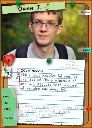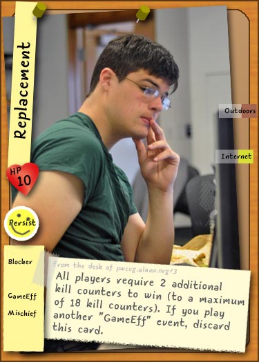 The game has already undergone a revamp. Originally, the intent was for GPA to be separate from Tasks, with Tasks being a more "doing things"-oriented victory condition and GPA being the "keep characters alive" victory condition. However, they were combined in the revamp, allowing players to achieve victory with a mix of grades and money (just like in real life!). Additionally, the pre-revamp version of the game, similar to Student Wars Version 2, had characters heavily influenced by their primary trait (for example, technology-based traits would be better at playing Task cards). The revamp brings the game back to its PPA TCG days, when there was no strong affiliation from traits.